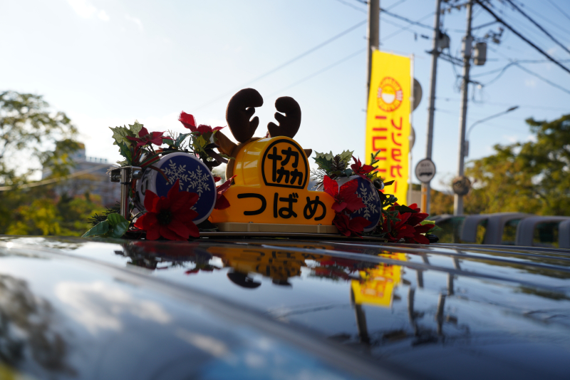 つばめ交通株式会社では、2001年から「街に明るい話題と笑顔を届けたい」という想いを込め、毎年クリスマス仕様の“サンタタクシー”を運行しています。