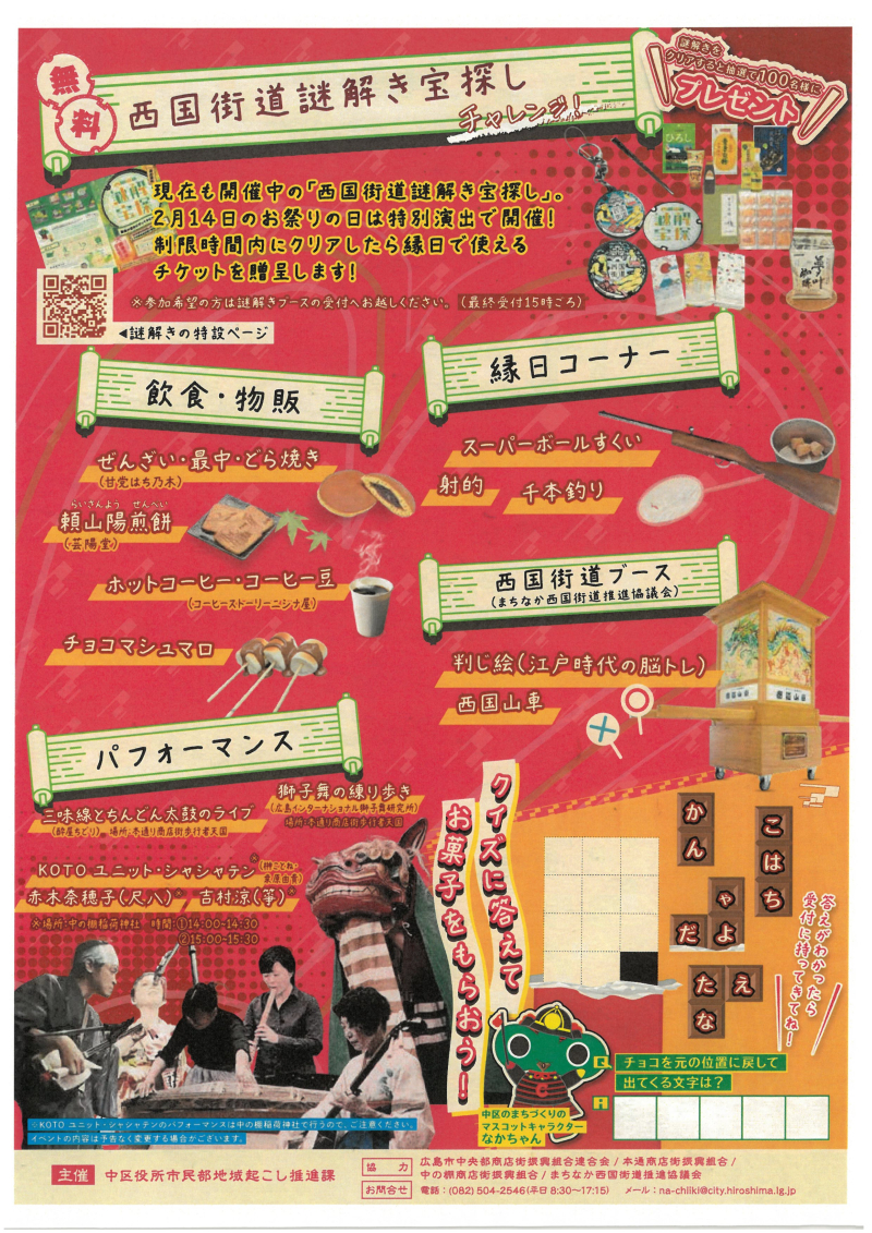 2/14㈯のバレンタインデーに本通商店街歩行者天国にて、