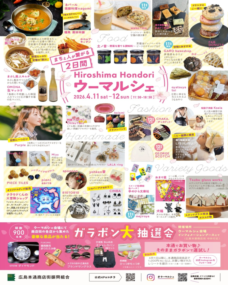 マルシェの出店情報・詳細は ø(ウー)マルシェInstagram・広島本通商店街振興組合青年部 Facebookを御確認ください。